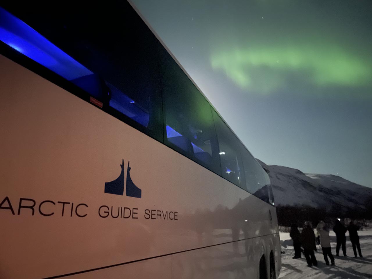 Join Arctic Guide Service for an exclusive Northern Lights experience that blends comfort, local culture, and true Arctic atmosphere. Travel in a spacious, comfortable bus from downtown Tromsø to one of our two private basecamps – selected based on weather conditions and aurora forecasts.