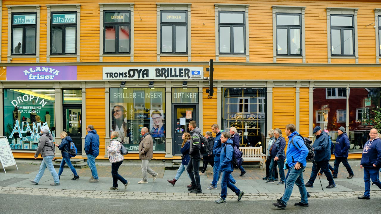 På denne turen tar vi deg med på spasertur rundt i den lille bykjernen i Tromsø, som ble grunnlagt i 1795, på Tromsøya og det omkringliggende fastlandet. Byen, som også blir kalt «porten til Arktis», har vært utgangspunktet for mange polekspedisjoner.